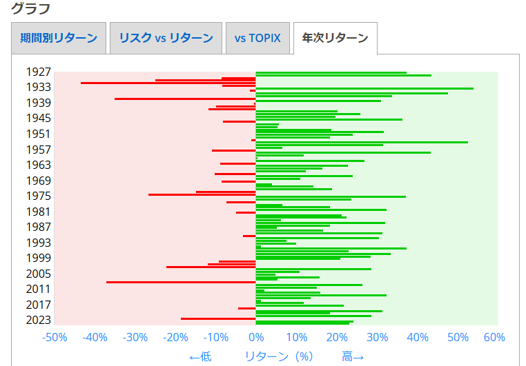 それと、過去のデータは参考にはなりますが、未来を保証するものではありません。必ず似たようなリターンが得られる訳ではないです。