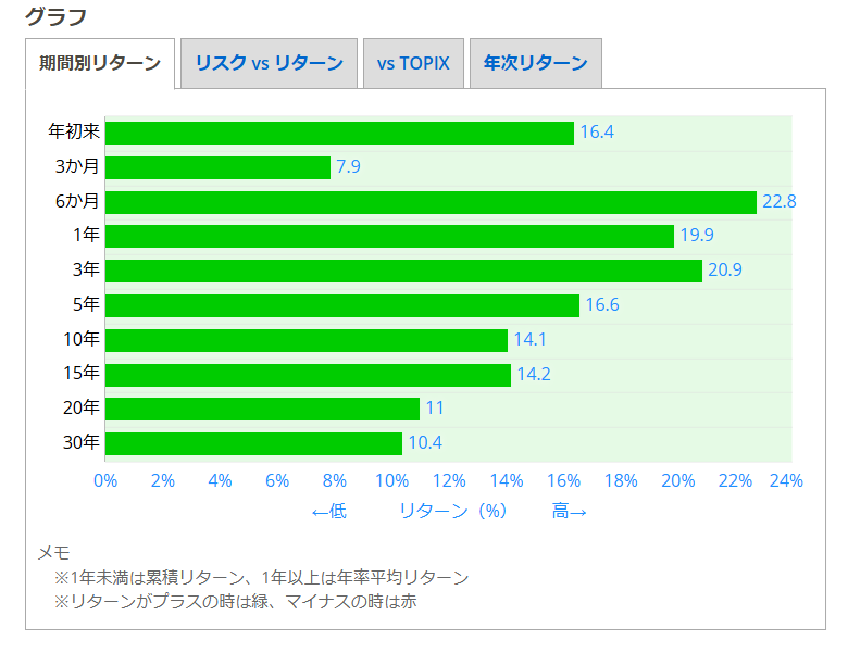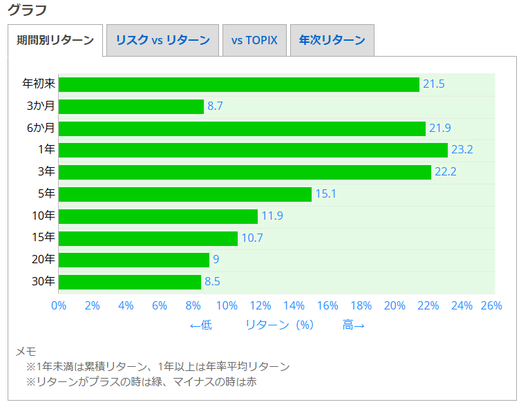 ここ6ヶ月から3年のリターンは凄まじいですね。