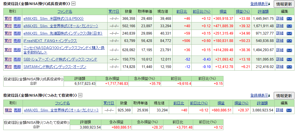 ただし、現在保有している投資信託は当分売るつもりはありません。