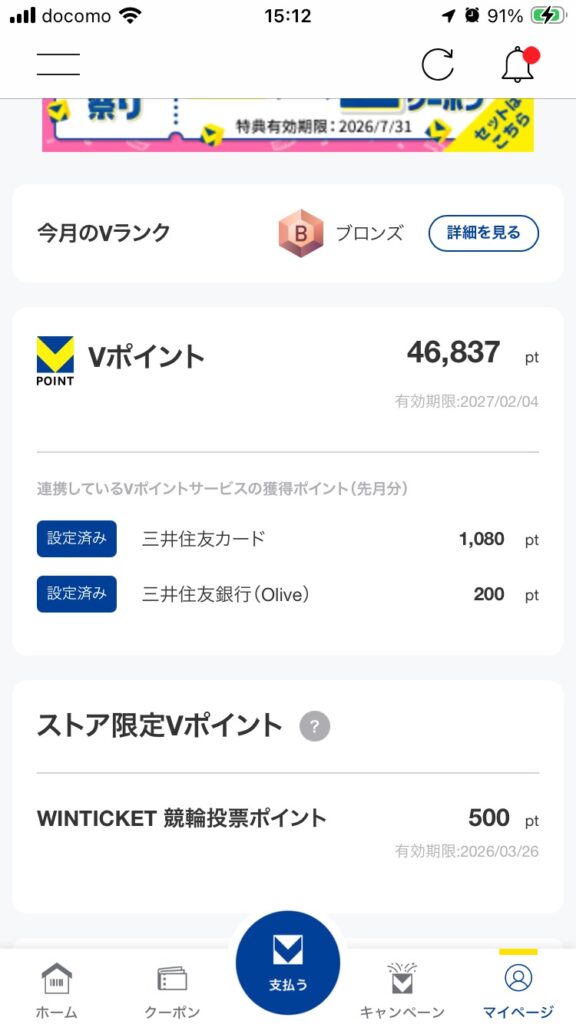 Vポイントは毎月「ウエル活」の際に3,000~4,000ポイントほど使っていますが、あまり減りません。