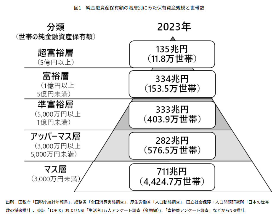 株式会社野村総合研究所のサイトで見ることができる資産別に世帯を表した三角形の図のことです。